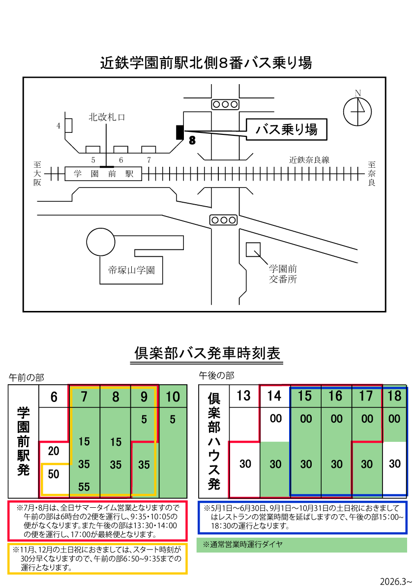 | 名阪国道⇒西名阪自動車道「郡山インター」を降り奈良方面へ右折。⇒国道24号線「二条大路南1」交差点を生駒、大阪方面へ左折、阪奈道路へ。約4キロ行くと左手に当クラブハウスが見える。それを過ぎ、すぐの阪奈道路学園前インターを「赤膚」方面へ左折、すぐ左折でクラブハウス。 | 郡山ICから 約12km 約20分 |